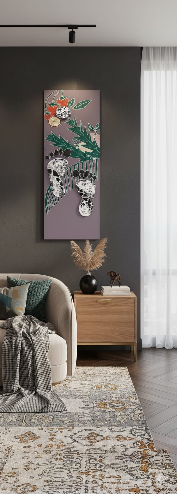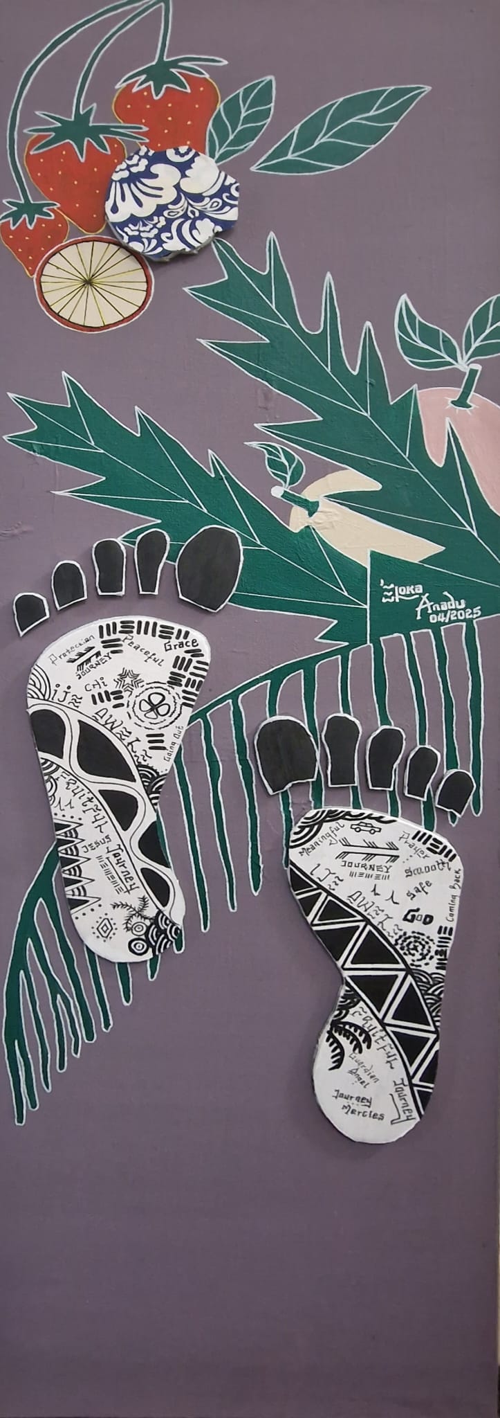 Footprints as Journey: The decorative Footprint represent the physical act of traveling – each step taken on one’s path. The intricate patterns adorning the footprints suggest that every journey carries personal significance and cultural meaning.